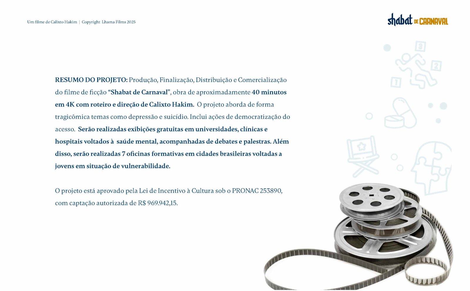Projeto realizado pela lei de incentivo Paulo Gustavo e concluído no ano de 2024. Veiculação livre. Cópias disponíveis para exibição sem custo adicional.